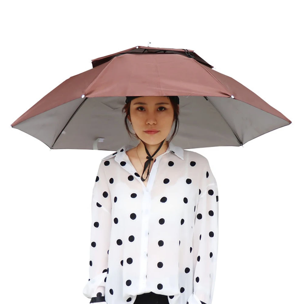 Outdoor Foldable Head Double Layer Umbrella Hat Anti-Rain Anti-Sun Head-Mounted Headwear Sun CAP Foldable Fishing Cycling Hiking Camping Shade Umbrella Hat